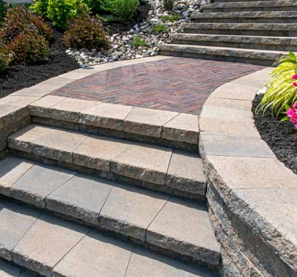 ■ Wall with curves under 4′ in height, up to 8 steps.